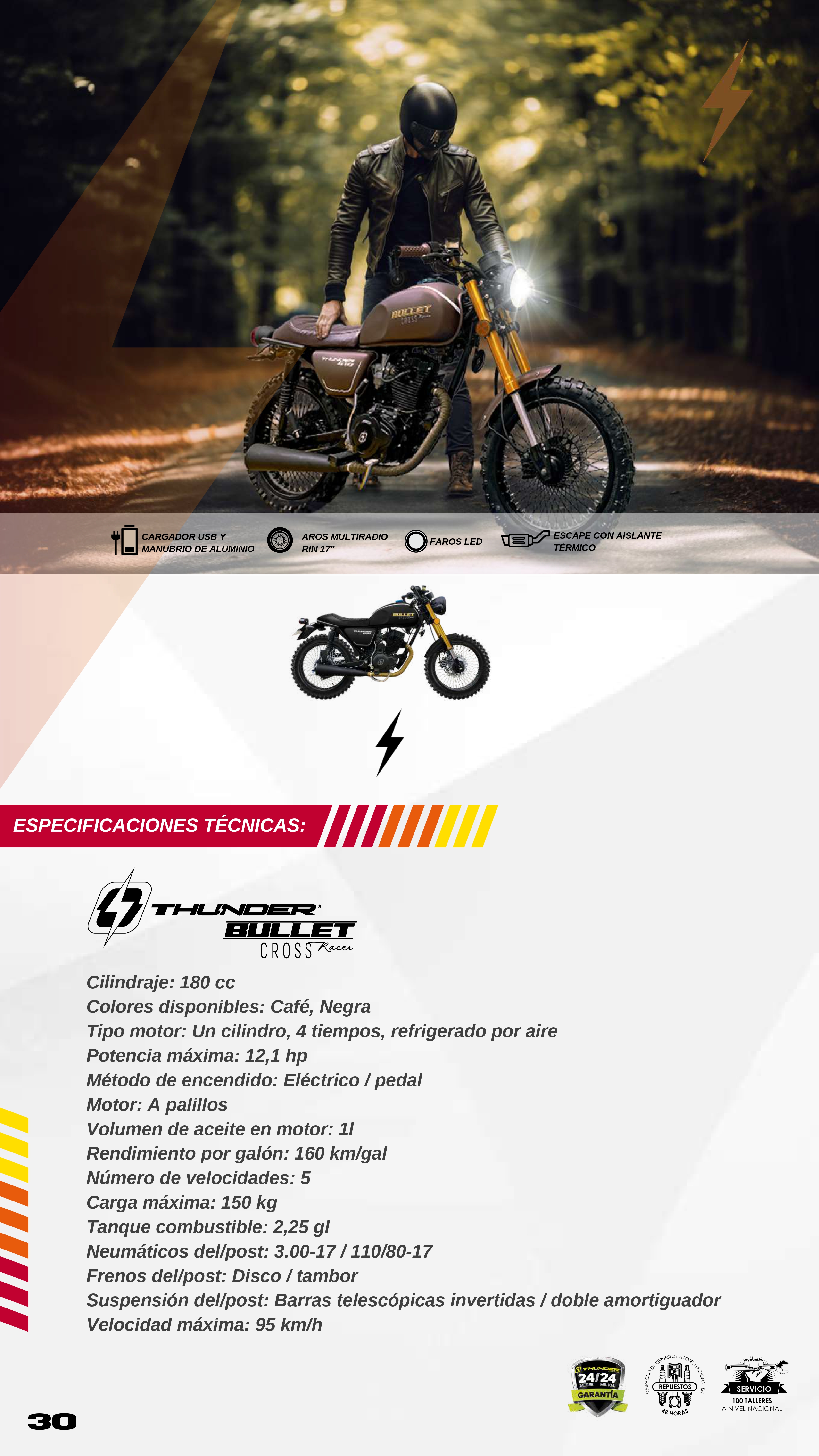 Su buscas elegancia, estilo y agilidad, Thunder Bullet es tu aliada perfecta. Con un diseño de tipo británico, esta motocicleta es perfecta para recorrer campo y ciudad. Su versatilidad es única y hará que te robes las miradas de todos.